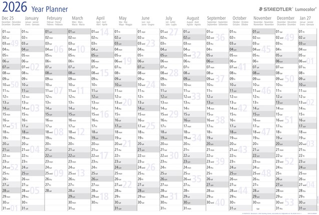Jaarplanner 2026 Staedtler Lumocolor 84x60cm oprolbaar